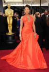 Jennifer Hudson made me dream in tangerine on Oscar night. This gorgeous Versace gown was by far the best of the night. Her new svelte figure shone through, highlighting her natural beauty in perfect elegance.
